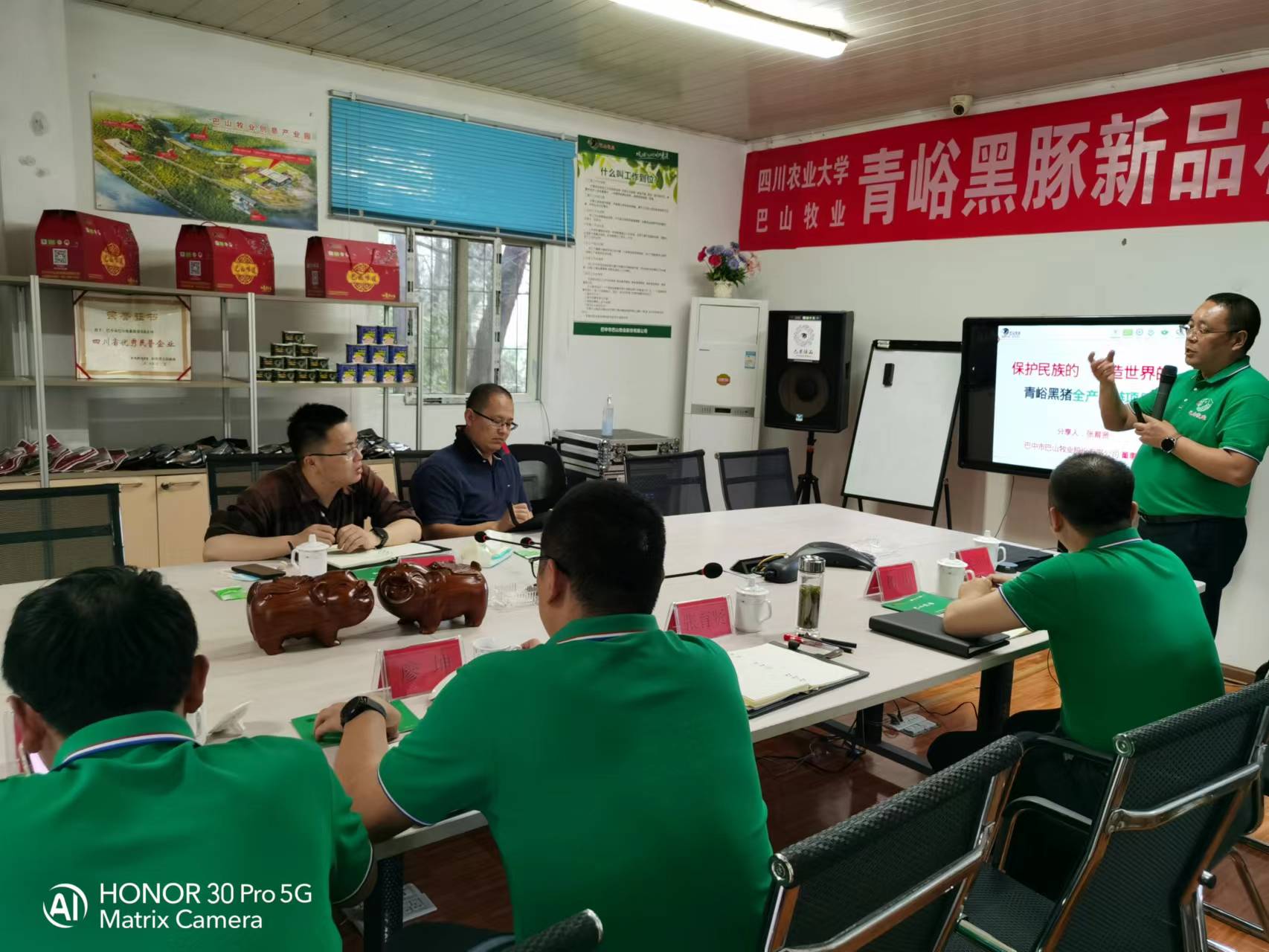 侯老師對青峪豬給予高度的贊美,他說:青峪豬生長在青山綠水,富硒帶的通江,飲山泉,舔富硒,聽音樂,吃百草是青峪豬的福,名副其實的是享受到動物福利.就目前我公司與盒馬西安、盒馬重慶市場合作中出現的問題現場進行溝通解決.